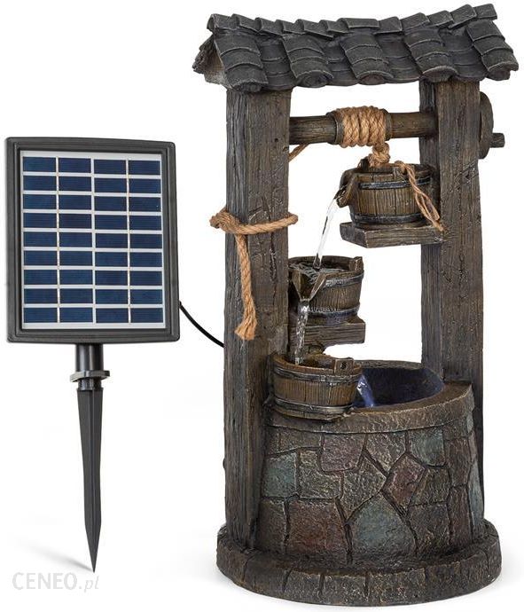 Przy fontannie przed bramą: solarna fontanna kaskadowa Speyer marki Blumfeldt pozwala dzięki sile słońca przepływać wodzie między swoimi czterema poziomami, a dzięki migoczącemu baletowi wodnemu pomaga także spowolnić czas. Łudząco podobna do prawdziwej fontanna jest przy tym nadzwyczaj dekoracyjna i będzie stanowić ozdobę każdego ogrodu, balkonu lub salonu.Technologia Sunriver kaskadowej fontanny Speyer marki Blumfeldt z panelem słonecznym 9 V / 2,8 W i wbudowanym akumulatorem litowo-jonowym gwarantuje funkcjonowanie fontanny całkowicie niezależnie od sieci elektrycznej. Dzięki magazynowaniu prądu w akumulatorze istnieje możliwość pracy urządzenia w nocy nawet do 5 godzin. Zrelaksuj się i odpoczywaj: łagodnie pluskająca woda przelewa się przez cztery poziomy fontanny ciągłym strumieniem. A dzięki zasadzie działania w koncepcji LoopFlow nie jest potrzebne żadne przyłącze wody ani uzupełnianie wody, wydajna minipompa utrzymuje ciągłą cyrkulację raz wlanej wody. Gwarantuje ona przy tym tłoczenie wody na wysokość 100 cm i wydajność tłoczenia rzędu 200 l/h.Blask nawet w ciemności: gdy tylko zapada wieczór, wbudowane oświetlenie LED zaczyna nadawać wodzie w fontannie ogrodowej Speyer marki Blumfeldt błyszczące akcenty i oświetlać nastrojowo ogród lub taras. Dzięki zastosowaniu materiału Polyresin fontanna jest nie tylko elementem przyciągającym wzrok, lecz jest również odporna na mróz, wytrzymała i stosunkowo lekkaBrak kosztów energii elektrycznej – idealna do pracy ciągłej: ozdobna fontanna Speyer marki Blumfeldt.