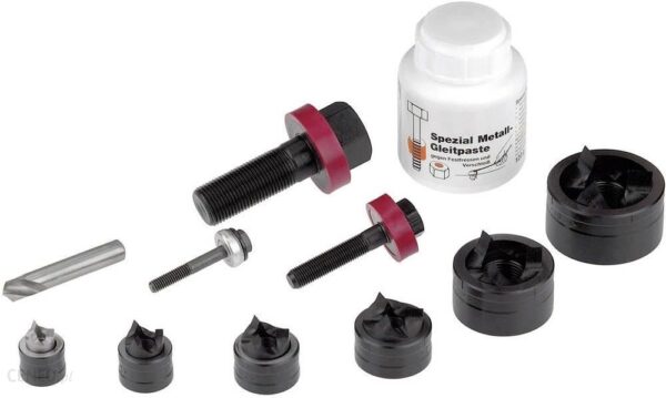 Dane techniczne: Do materiału: blacha,tworzywo sztuczne,aluminium · Rodzaj produktu: Dziurkacz, zestaw · Właściwości materiałowe: z diamentową powłoką