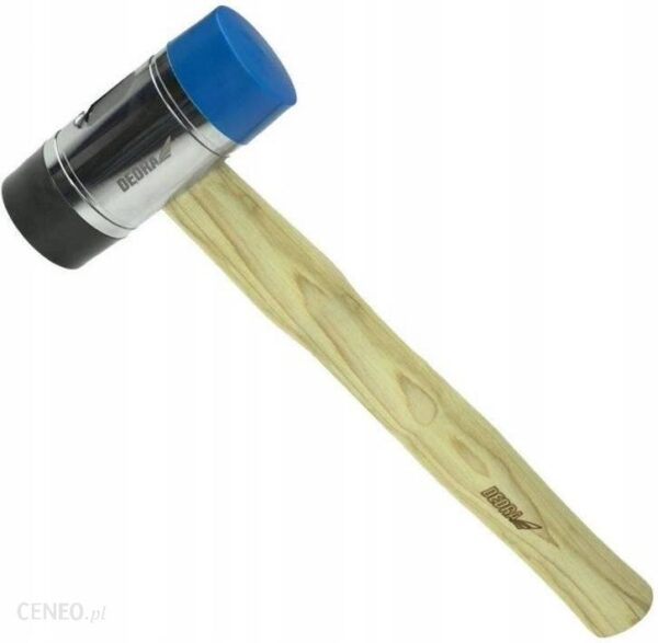 Dedra 13M303 Młotek blacharski 45 mm PU/nylonKod produktu: 13M303Dedra 13M303 Młotek blacharski 45 mm PU/nylonMłotek blacharski DEDRA 13M303 to narzędzie, przydatne nie tylko w warsztacie blacharskim, ale we wszystkich pracach związanych z cieńszymi blachami, gdzie chcemy uzyskać gładką powierzchnię. Dwuczęściowy obuch wykonany został z tworzywa sztucznego. Jedna jego strona została wykonana z poliuretanu (miękka), druga z nylonu (twarda), a całość połączona stopem cynku. Pozwala to wykorzystanie twardszej lub miększej strony młotka bez konieczności szukania drugiego narzędzia. Młotek blacharski pozwala na precyzyjne i równomierne formowanie blachy bez ryzyka uszkodzeń powierzchni. Młotek sprawdzi się również w czynnościach ogólno-montażowych np. do delikatnego i miękkiego drewna lub podczas dobijania płyt meblowych na kołki, w przypadku których użycie młotka ślusarskiego zostawiałoby nieestetyczne zagłębienia powierzchni. Młotek blacharski DEDRA 13M303 posiada drewniany trzonek z hikory co zapewnia zarówno wysoką wytrzymałość jak i lekkość. Wyprofilowana sekcja na uchwycie dobrze leży w dłoni, zapobiegając wysuwaniu się z młotka z ręki. Połączenie trzonka z obuchem dodatkowo zabezpieczone żywicą syntetyczną.Cechy:Dwuczęściowy obuch (poliuretan + nylon) – różna twardość w zależności od potrzebWygodny, profilowana uchwytWysoka wytrzymałość, niska waga – trzonek hikorowyŚrednica obucha: 45 mmDługość: 350 mmWaga: 1,75 kg