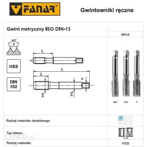 Zestaw gwintowników ręcznych zwykłych M11 wykonanych zgodnie z normą DIN-352 z gwintem metrycznym charakteryzujących się uniwersalnym zastosowaniem – przeznaczonych do otworów przelotowych i nieprzelotowych. Materiał, z jakiego zostały zrobione gwintowniki – wysokowydajna stal szybkotnąca – charakteryzuje się wysoką odpornością na zużycie. Idealne do pracy w stali automatowej, konstrukcyjnej, stali do nawęglania, stali konstrukcyjnej węglowej i niskostopowej, staliwa. Komplet trzysztukowy zawiera gwintownik zdzierak, gwintownik pośredni i gwintownik wykańczak.Dane techniczne:Średnica znamionowa gwintuM11Podziałka gwintu (skok)1,5 mmDługość całkowita70 mmDługość części roboczej22 mmDługość użytkowa- mmŚrednica chwytu8 mmWielkość zabieraka6,2 mmŚrednica wiertła pod gwint9,5 mmMateriałHSSWykonanie zgodnie z normąDIN-352Dawne oznaczenieNGMM/3