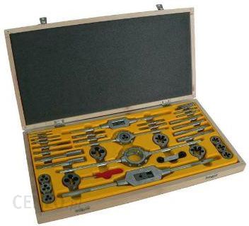 POLSKI ZESTAW NARZYNEK I GWINTOWNIKÓW CZD-40 W DREWNIANEJ KASECIE KASECIE,RENOMOWANEJ FIRMY FANAR S.A. , PRAWDZIWA JAKOŚĆ NIE CHIŃSKIE PODRÓBKI.DANE TECHNICZNE I OPIS:gwintowniki ręczne 2-sztukowe: M3, M4, M5, M6, M7, M8, M10, M12, M14, M16, M20narzynki: M3, M4, M5, M6, M7, M8, M10, M12, M14, M16, M20pokrętka do gwintowników PBPc Nr 2 i Nr 3 .oprawka do narzynek PBGa 25×9 i 38x14wkrętak do montażu narzynekwzorce gwintu metrycznegoHSS,drewniana kaseta,waga 3,40kg,wymiary kasety: 475x255x40mm,