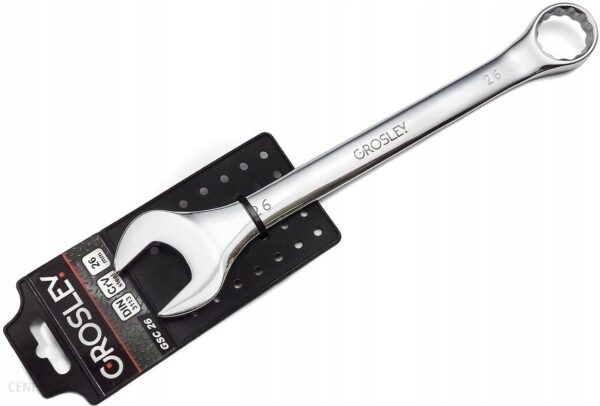 Grosley GSC 26Klucz płasko-oczkowyRozmiar 26 mmProfesjonalnej jakości klucz płasko-oczkowy wykonany ze stali chromowo-wanadowej (Cr-V) charakteryzującej się wysoką wytrzymałością oraz sprężystością. Polerowana powierzchnia znakomicie ułatwia utrzymanie narzędzi w czystości.Klucze zgodne z normą DIN 3113