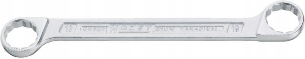 Klucze oczkowe podwójne prosteWykonanie: DIN 837 B, ISO 3318. Ze stali chromowo-wanadowej, chromowany matowo, oczka cienkościenne i przesunięte w bok, polerowany.