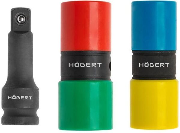 Innowacyjne nasadki dwustronne, udarowe w zestawie z przedłużką udarową kompaktowe rozwiązanie z najbardziej popularnymi rozmiarami nasadki oraz przedłużką pozwalającą na ich wykorzystanie.Charakterystyka napęd 1/2″ sześciokątny; wykonane z wysokogatunkowej stali stopowej chromowo-molibdenowej; wysoka wytrzymałość; zawiera końcówki nasadek w rozmiarach: 17, 19, 21 i 22 mm; w zestawie z przedłużką udarową 1/2″, dł. 75 mm; odkuwane matrycowo.