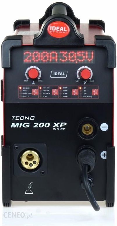 IDEAL TECNO MIG 200XP PULSE półautomat spawalniczy inwertorowy 230V TECNOMIG 200XP PULSE jest inwertorowym synergicznym półautomatem spawalniczym przeznaczonym do spawania łukowego metodą MIG/MAG, MMA, TIG Lift, Pulse TIG Lift oraz lutospawania blach ocynkowanych. Urządzenie zostało zaprojektowane do wykorzystania w użytku profesjonalnym. Urządzenie posiada trzy synergiczne tryby spawania MIG/MAG: MIG, MIG PULS, MIG PODWÓJNY PULS. TECNOMIG 200XP PULSE stosowany jest do spawania aluminium i jego stopów, stali nierdzewnej, stali węglowych i niskostopowych oraz lutospawania blach ocynkowanych. Spawanie odbywa się w osłonie gazu obojętnego, aktywnego bądz mieszanki w zależności od wybranego na panelu sterowania programu. Dzięki zastosowaniu pulsacji MIG następuje zwiększenie ilości ciepła wprowadzanej do spawanego elementu. Możliwe jest uzyskanie lepszej spoiny, niezależnie od pozycji spawania oraz zmiejszenie ilości rozprysków. Zarówno przy metodzie MIG jak również MIG PULS mamy możliwość wyboru funkcji przycisku w uchwycie pomiędzy pracą w trybie Spot (spawanie punktowe), 2-takt, S2-takt, S4-takt (dedykowany do spawania aluminium), 4-takt (blokada przycisku do długich spoin) Czytelny i prosty w obsłudze cyfrowy panel sterowania umożliwia dokładną regulację parametrów spawania MIG takich jak : regulacja prądu szczytowego / prądu bazy w podwójnym pulsie regulacja indukcyjności (MIG / Podwójny Puls) regulacja prądu szczytowego w pulsie regulacja amplitudy pulsu w podwójnym pulsie regulacja dojazdu drutu regulacja szerokości pulsu (wypełnienia) w podwójnym pulsie regulacja częstotliwości pulsacji w podwójnym pulsie regulacja czasu spawania punktowego regulacja czasu upalania drutu po spawaniu regulacja czasu wypływu gazu przed spawaniem regulacja czasu wypływu gazu po spawaniu Urządzenie posiada również dokładną regulacje parametrów MMA / TIG takich jak: regulacja ARC FORCE (MMA) regulacja prądu w HOT START (MMA) regulacja czasu w HOT START (MMA) wybór programu kontroli prądu bądź kontroli mocy (MMA) regulacja częstotliwości pulsu (TIG) regulacja szerokości pulsu (TIG) regulacja amplitudy pulsu (TIG) W metodzie MMA mamy mozliwość włączenia funkcji VRD, redukującej napięcie spoczynkowe stanu jałowego na elektrodzie do wartości bezpiecznej. Zapewnia bezpieczeństwo przeciwporażeniowe podczas pracy w wilgotnym środowisku. PARAMETRY FIZYCZNE Rozmiar szpuli drutu 5 kg Stopień ochrony IP 21 Waga urządzenia / zestawu 20 / 22 kg Wymiary gabarytowe dł x szer x wys 570x355x390 mm PARAMETRY TECHNICZNE Moc 5,6 kW Napięcie stanu jałowego 50 V Prąd maksymalny 200 A Prąd przy pracy 100% 155 A Prąd przy pracy 60% 200 A Średnica drutu aluminiowego 1,0 – 1,2 mm Średnica drutu do lutospawania 0,8 mm Średnica drutu samoosłonowego 0,8 mm Średnica drutu stalowego 0,8 – 1,0 mm Średnica drutu ze stali nierdzewnej 0,8 – 1,0 mm Średnica elektrody spawalniczej 1,6 – 4,0 mm Zakres regulacji prądu spawania 20 – 200 A PARAMETRY ZASILANIA Zabezpieczenie sieci zasilającej C25A Znamionowe napięcie zasilania 230 V, 50-60Hz, 1ph Parametry fizyczne Urządzenie posiada układ chłodzenia wentylatorem co zdecydowanie zwiększa jego wydajność. Układ chłodzenenia wentylatorem – uruchamiany tylko w razie potrzeby – ogranicza zanieczyszczenie wewnątrz urządzenia. Urządzenie wyposażone jest w zabezpieczenie przeciw przeciążeniu, co zwiększa jego niezawodność. Parametry zasilania Zasilanie jednofazowe 230V.Urządzenie jest wyposażone we wtyczkę zasilania. Wyposażenie Dostawa obejmuje urządzenie z profesjonalnym uchwytem spawalniczym MIG 24 o długości 3 metry uzbrojonym pod aluminium, przewodem elektrodowym o długości 3 metry, przewodem masowym o długości 3 metry, rolkami do podajnika 1,0-1,2 do aluminium oraz 0,8-1,0 do stali. Warunki gwarancji Gwarancja 12 miesięcy przy użytku profesjonalnym. Serwis gwarancyjny realizowany jest w systemie door-to-door bez kosztów transportu po stronie użytkownika. PRODUKT FABRYCZNIE NOWY, WOLNY OD WAD POSIADA PEŁNĄ GWARANCJĘ PRODUCENTA