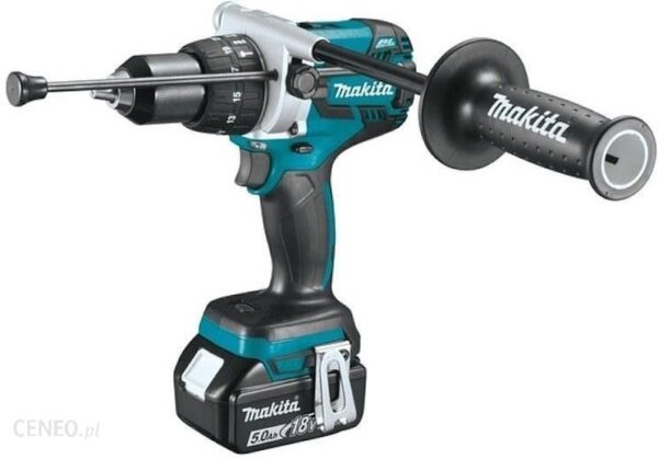 DHP481RTJ Akumulatorowa wiertarko-wkrętarka udarowa 18 VOpis:2-biegowa wiertarko–wkrętarka udarowaPraca na jednym naładowaniu akumulatora zwiększona o 20%21-stopniowa regulacja momentu obrotowego + funkcja wierceniaTechnologia XPT – podwyższona odporność na pył i wilgoćBLDC – bezszczotkowy silnik prądu stałegoKompaktowe rozmiary – całkowita długość 205 mmSzybkomocujący uchwyt wiertarski pozwala na szybką wymianę bitówElementy przekładni wykonane z metalu dla zwiększonej żywotnościKontrola prędkości obrotowej spustem włącznikaWskaźnik poziomu naładowania akumulatoraDostarczana w walizce systemowej MAKPAC z dwoma akumulatorami BL1850B (18 V / 5,0 Ah) i ładowarkąDane techniczne:Napięcie zasilania 18 VTyp akumulatorów Li-ionObsługiwane akumulatory 1,5 / 2,0 / 3,0 / 4,0 / 5,0 AhPrędkość obr. na biegu jał. 1 bieg 0 – 550 obr./minPrędkość obr. na biegu jał. 2 bieg 0 – 2100 obr./minCzęst. udarów na biegu jał. 1 bieg 0 – 8250 obr./minCzęst. udarów na biegu jał. 2 bieg 0 – 31500 obr./minMaks. średnica wiercenia w stali 13 mmMaks. średnica wiercenia w drewnie 76 mmMaks. średnica wiercenia w betonie 16 mmMaks. moment obr. miękki / twardy 60 / 115 NmZakres mocowania 1,5 – 13 mmWymiary (D x S x W) 205mmWaga z akumulatorem (EPTA) 2,7 kgDostarczane wyposażenie:Ładowarka DC18RC 195584-2Walizka systemowa MAKPAC TYP 2 821550-0Wkład do walizki MakPac2 Akumulatory BL1850B (18 V / 5,0 Ah )Końcówka wkrętakowa nr 2Uchwyt do mocowania na pasku 346317-0Uchwyt na końcówki wkrętakowe 452947-8 2Rękojeść boczna kpl. 126413-8