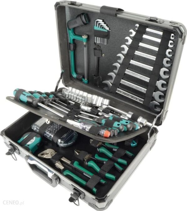 Walizka narzędziowa z aluminium, wyposażona, 133-częściowaPrzejrzysty system organizacjiKażde narzędzie jest bezpiecznie przymocowane w podanym miejscuDobra stabilność walizkiSiatka na drobne części133-częściowy Zestaw narzędzi w aluminiowej walizce od Brüder Mannesmann Ideal do wszystkich prac w domu, ogrodzie, samochodzie i motocyklu. Zestaw narzędzi w wytrzymałej aluminiowej walizce narzędziowej z urządzeniami do odpowiedniego przechowywania ręcznych narzędzi.Uwaga! Opis tego produktu został przetłumaczony automatycznie. Jeśli możemy poprawić go dzięki Tobie, prosimy o kontakt.Dane techniczne: Długość produktu: 460 mm · Ilość (LOV – tylko w tytule): 133 szt. · Materiał: aluminium · Specyfikacja torby narzędziowej: w walizce · Szerokość produktu: 365 mm · Waga: 8400 g · Wysokość produktu: 145 mmDostawa obejmuje: 1 brzeszczot piły 150 mm, certyfikat VPA-GS6 zapasowe brzeszczoty (4 x 24Z, 2 x 16Z)8 wkrętaków kątowych, stal CrV, matowo-chromowana, atest VPA-GS: 1.5-2.0-2.5-3.0-4.0-5.0-5.5-6.0 mm8 kluczy płaskich, stal CrV, chromowana matowo, V’PA-GS certyfikat: 6×7, 8×9, 10×11, 12×13, 14×15,16×17, 18×19, 20×22 mm1 grzechotka 10 mm (3/8”), 72 zębów, certyfikat VPA-GS9 końcówek do kluczy nasadowych 10 mm (3/8″), stal CrV, V’PA-GS: 10-11-12-13-14-15-17-19 mm8 końcówek do kluczy nasadowych 6,3 mm (1/4″), stal CrV, atest VPA-GS: 4-4,5-5-5,5-6-7-8-9 mm1 adapter do bitów 6,3×6,3 mm, certyfikat VPA-GS1 adapter do wkładek kluczy nasadowych 10×6,3 mm, certyfikat VPA-GS1 rączka 6,3 mm, ostrze CrV, certyfikat VPA-GS2 przedłużenia 10×75 mm, 10×150 mm, stal CrV, certyfikat VPA-GS1 nasadka do świec zapłonowych 10×21 mm, stal CrV, wkrętak warsztatowy VPA-GS z certyfikatem 6, ostrze CrV: Płaskie: 3,0 x 75, 4,0 x 100, 6,5 x125, 8,0 x 150 mm, krzyżakowe: PH1x80, PH2x100 mm2 wkrętaki do mechaniki precyzyjnej, końcówki CrV: Płaskie: 2,5×50 mm, do wkrętów z rowkiem krzyżowym: PH00x50 mm1 tester napięcia 100-250V, certyfikat TÜV-Rld-GS1 młotek ślusarski, trzonek z włókna szklanego, 300g, zgodny z TÜV-POŁUDNIE-GS1 nóż uniwersalny 18 mm, z ostrzem VPA-GS z certyfikatem 10 18 mm1 obcinak boczny 160 mm, certyfikat VPA-GS1 kombinerki 180 mm, z certyfikatem VPA-GS1 szczypce nastawne 250 mm, certyfikat VPA-GS1 taśma miernicza 5 m x 19 mm60 końcówek do wkręcania, 25 mm, stal CrV, sprawdzona jakość VPA1 uchwyt do bitów zapewniający szybką wymianę