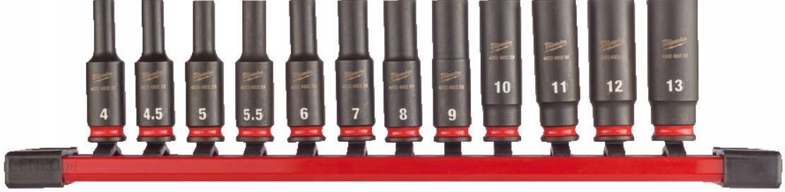 Zestaw nasadek udarowych długich 1/4″ MILWAUKEE 4932480453 MILWAUKEE 1/4 Cechy:Stal SHOCKWAVE™IMPACT DUTY to chromowo-molibdenowy stop stali, który zapewnia ostateczną siłę i wytrzymałość.Najlepsze dopasowanie dzięki 6 punktom chwytuSześciokątna geometria antypoślizgowa chroni nasadkę i zapobiega ścieraniu się ścianekTrwałe i przejrzyste oznaczenia – tłoczony, wypełniony farbą rozmiar średnicy i laserowo wygrawerowany numer katalogowy.Konstrukcja z podwójnymi otworami i żłobieniem dla akcesoriów ochronnych.W zestawie nasadki:4 mm4,5 mm5 mm5,5 mm6 mm7 mm8 mm9 mm10 mm11 mm12 mm13 mmZaufaj doświadczeniu!Milwaukee to firma założona w 1924 roku. Ich celem jest produkcja najlepszych i najbezpieczniejszych profesjonalnych elektronarzędzi heavy-duty, kompatybilnych akcesorów oraz środków ochrony. Dzisiaj, marka Milwaukee jest identyfikowana z profesjonalnymi narzędziami o najwyższej jakości, trwałości i niezawodności jaką tylko można kupić.