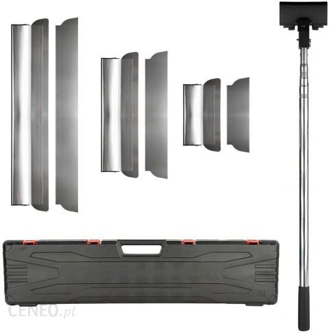 Szpachla wykończeniowa o lekkiej, aluminiowej konstrukcji, która idealnie sprawdzi się w precyzyjnym szpachlowaniu powierzchni ścian i sufitów. Doskonała zarówno do nakładania gładzi metodą suchą, jak i mokrą. W skład zestawu wchodzą noże z dodatkowymi ostrzami, adapter, przedłużka teleskopowa i walizka.
