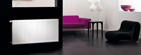 Grzejniki płytowe PURMO Compact z profilowanymi płytami grzejnymi i elementami konwekcyjnymi. Wyposażone w osłony boczne i osłonę górną typu grill. Cztery otwory przyłączeniowe z gwintem wewnętrznym G 1 „” umożliwiają podłączenie boczne zarówno z prawej jak i z lewej strony.