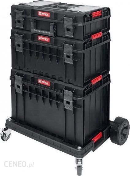 Modułowy zestaw 3 skrzynek narzędziowych + Platforma Transportowa, Regulowane przegrody korpusu z elastycznymi pasami, 2 x Organizer w pokrywie, Poliwęglanowe pokrywy organizerów, Solidne zapięcia, Mocne rączki, Uszczelka w pokrywie, Odporność na pył i wodę, Modularna konstrukcja, Żebra wzmacniające, Koła pokryte gumą, Metalowa oś. Skrzynie 200 + 350 + 450 pakowane w jednym kartonie. Platforma Transportowa w osobnym standardowym kartonie.Zestaw pakowany w 2 kartony:600 x 400 x 930760 x 520 x 185**EAN: 5901238247494Kod Producenta: Z247494PG003Waga: 19 kg
