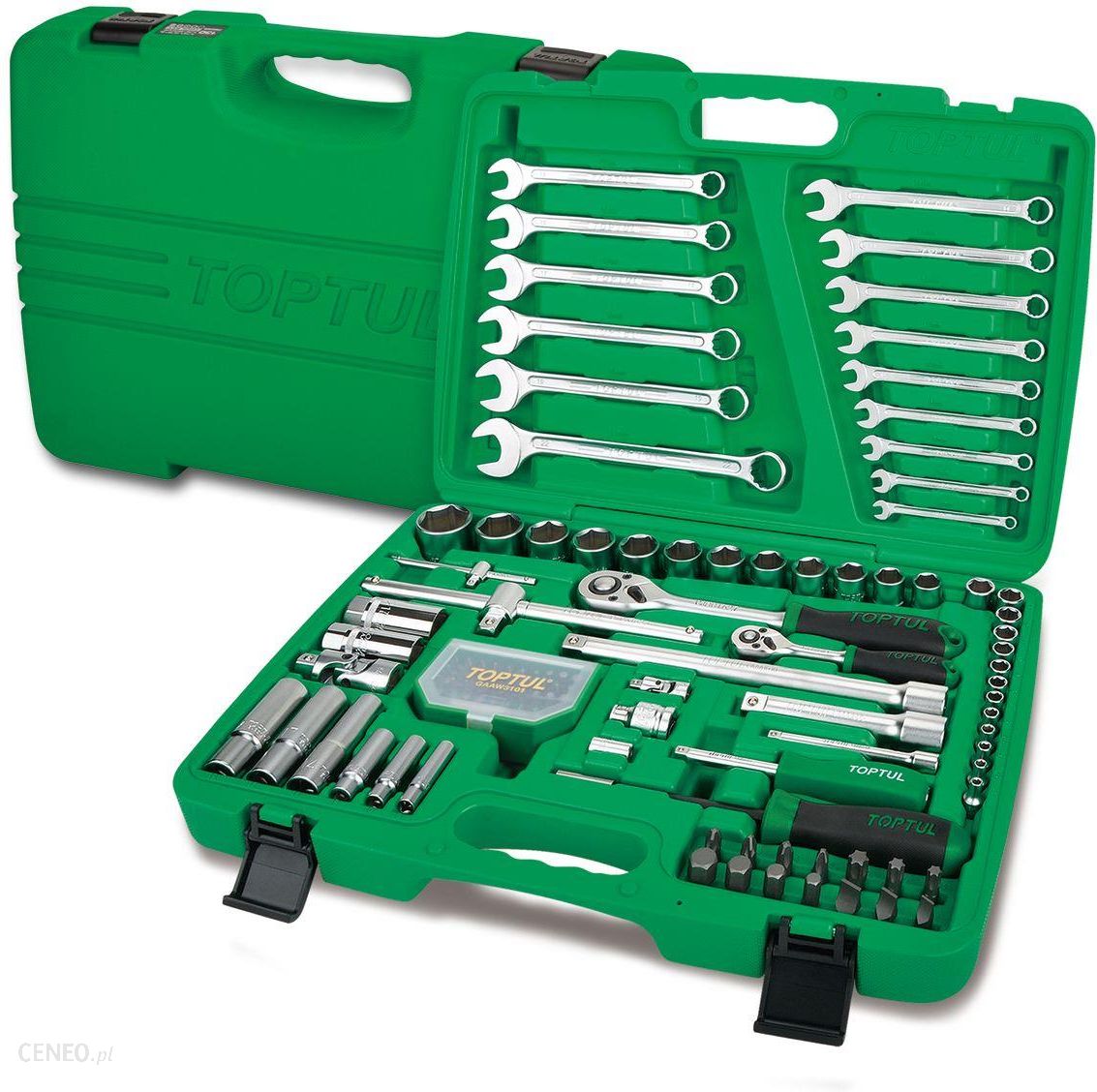 Zestaw 106 sztuk narzędzi w rozmiarach 1/4″, 1/2″. Narzędzia TOPTUL produkowane są z myślą o najbardziej wymagających pracach. Precyzyjnie dobrane materiały, wysoka dokładność wykonania oraz odporność na odkształcenia i pęknięcia decydują o ich ogromnej popularności i świetnej renomie. W połączeniu z wyjątkowym wykończeniem powierzchni i przystępną ceną.