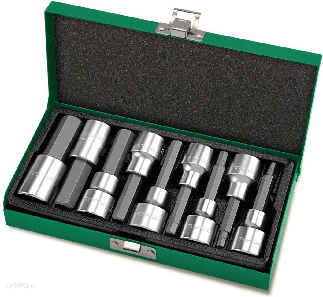 Zestaw zawiera dziewięć nasadek typu Torx w rozmiarach T20