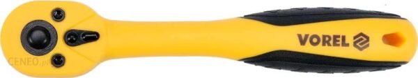 Grzechotka VOREL została wykonana ze stali CrV, co zapewnia jej wytrzymałość podczas intensywnej pracy. Cały korpus został pokryty żółtym plastikiem, a rękojeść posiada gumowe wstawki. Grzechotka posiada kwadrat 1/4″ oraz całkowitą długość 155 mm.ParametryIlość zębów: 72Materiał: CrVRozmiar [cal]: 1/4