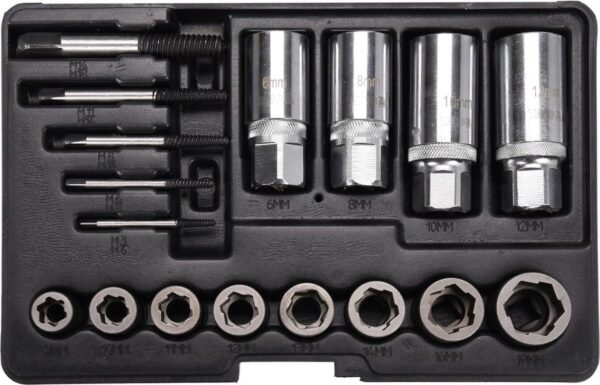 Opis produktuUniwersalny 17-częściowy zestaw wykrętaków przeznaczonych do odkręcania śrub i nasadek. Polecany serwisom mechanicznym i motoryzacyjnym.• elementy wykonane z wysokiej jakości stali CrMo oraz CrVParametry